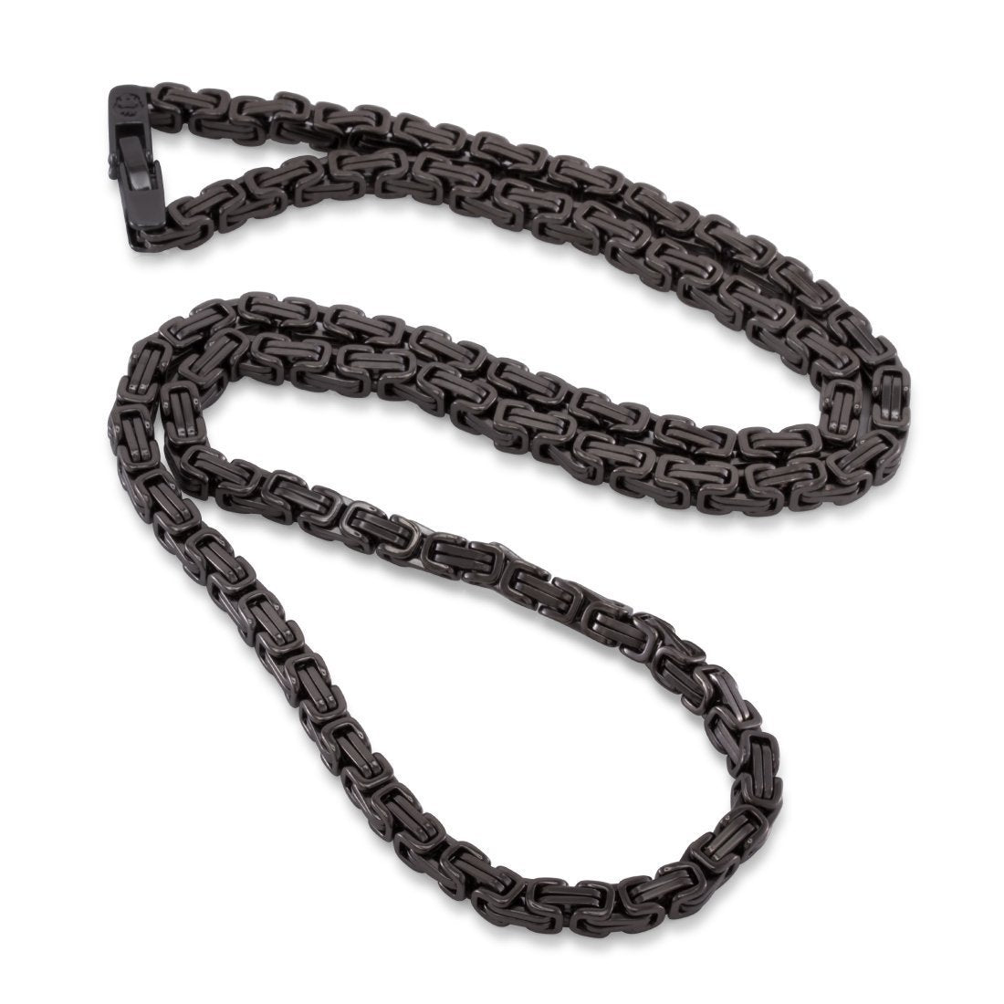 Check out this 5mm men's bike chain designed by King Ice. It features a black rhodium-ionic plating with a high-polish finish and a fold-over clasp. This 5mm chain is available in different lengths. The King Ice logo is engraved on the clasp.