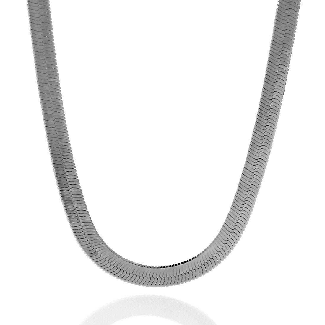 8mm, White Gold Thin Herringbone Chain