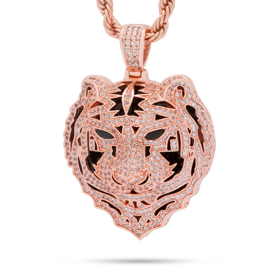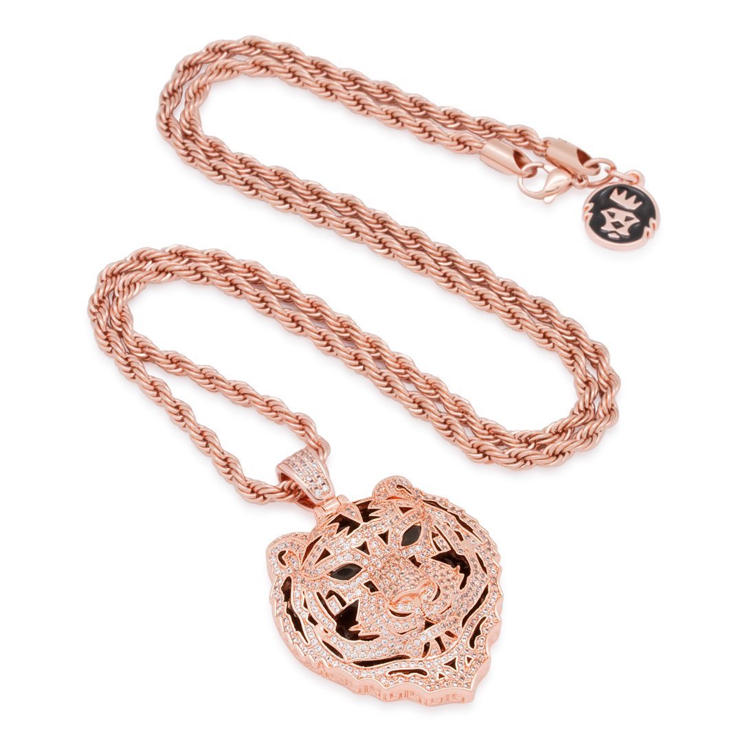 From its color to its reputation, the Bengal Tiger remains known for its exotic appearance. As part of Snoop Dogg's Jungl Julz Collection, he Bengal Tiger pays homage to its deadly heritage. The pendant is available in 14K Gold plating, white gold plating and rose gold plating to add protection and shine. With white and black CZ stones, the pendant shines alongside its 4mm, 24" rope chain to create the rough and rugged look of these exotic creatures.