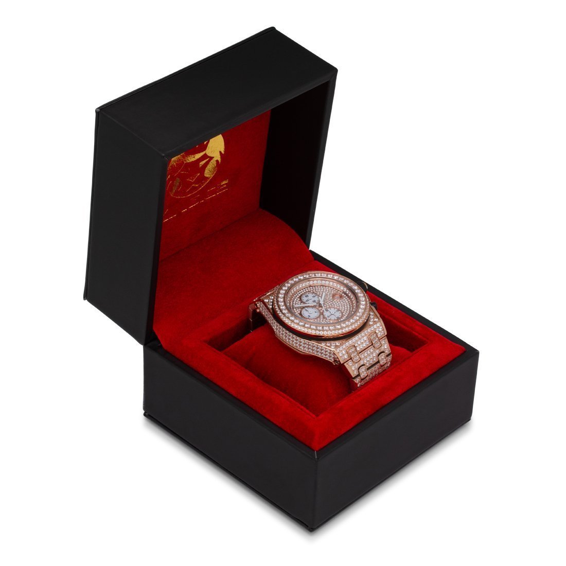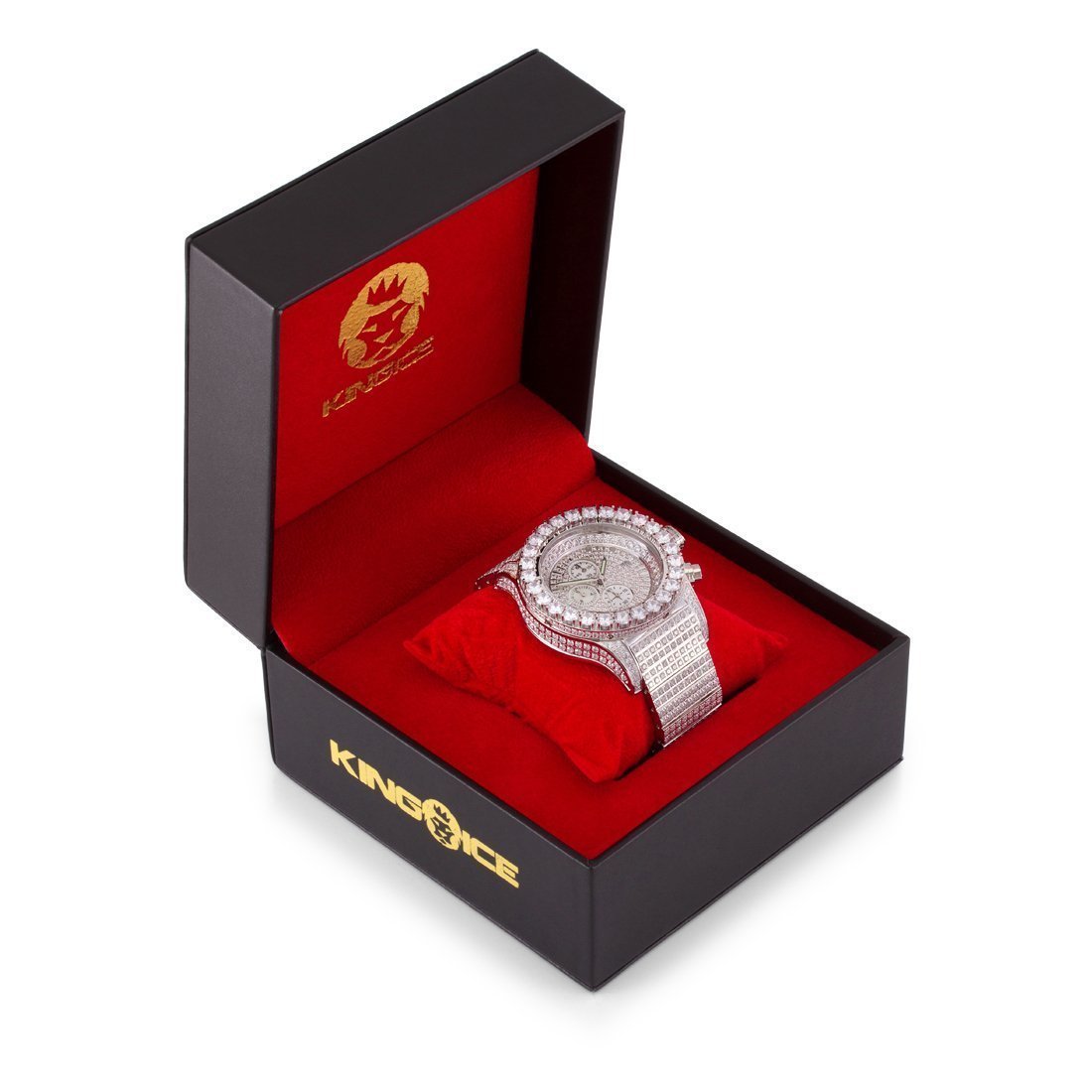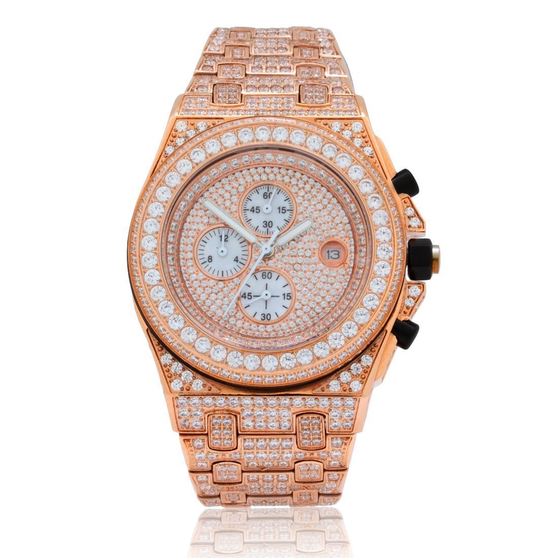The Magistrate Watch uses handset VVS Diamond Simulate stones to create the grandiose look and feel. Featuring triple chronographs to track every second from this Japanese movement watch, and with a 1" wide band and a 2" wide face, this watch provides the big and large dial you look for in a man's watch.