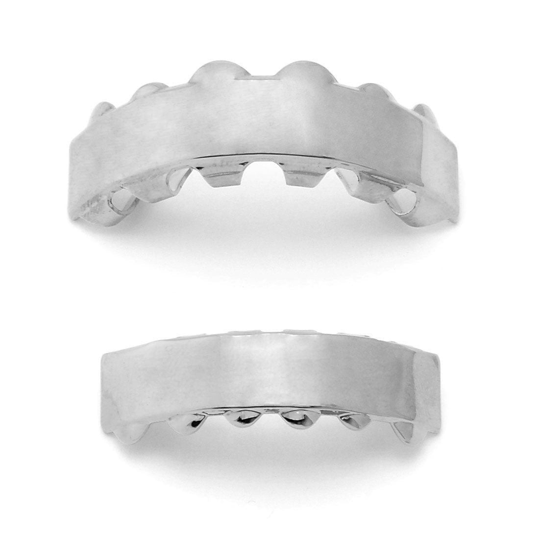 Get your hands on these silver-plated solid Grillz! Containing a flat silver-plated finish for those who do not want to be completely iced! Available for the upper and lower set of teeth. These will go fast. Also available in a gold finish for those who love to sport gold!