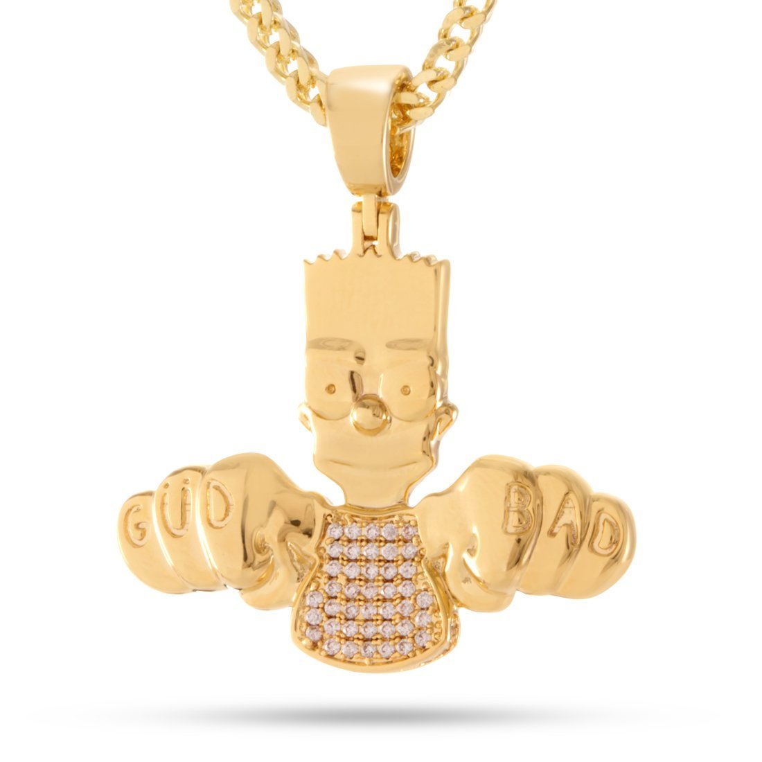 Dangerous, rebellious, but beloved by all fans, Bart Simpson remains one of the most iconic characters because of his misdeeds and iconic catchphrases like, “Ay Caramba!” and “Don’t have a cow, man!” Now, as part of the officially licensed Simpsons x King Ice collab, the Bad to the Bart Necklace features a vibrant Bart flashing his rebellious, yet sweet side with 14K Gold plating and white gold plating. Each piece features AAA, handset stones and includes a 2.5mm, 26” Stainless Steel Franco Chain.