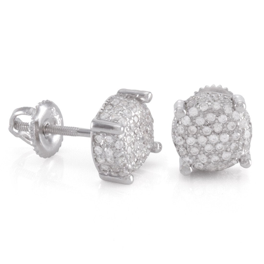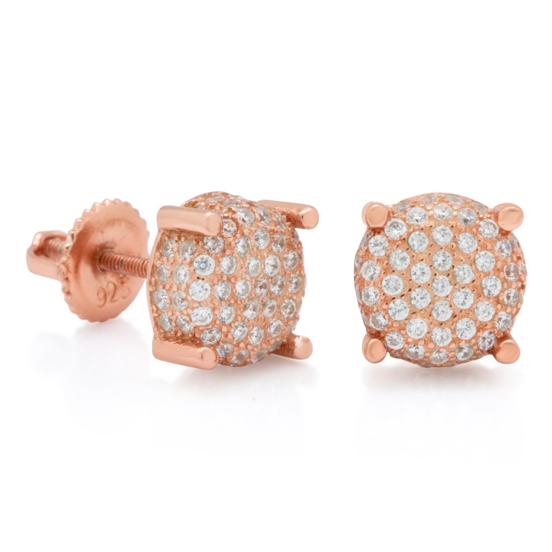 Our Sterling Silver Prong Earrings earn its name from the elegant prongs that hold these 8mm button earrings. Each earring uses .925 sterling silver and available in 14K gold plating, white gold plating, or rose gold plating and finished with handset VVS Diamond Simulate stones.