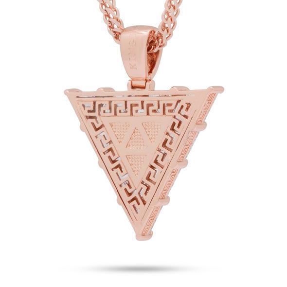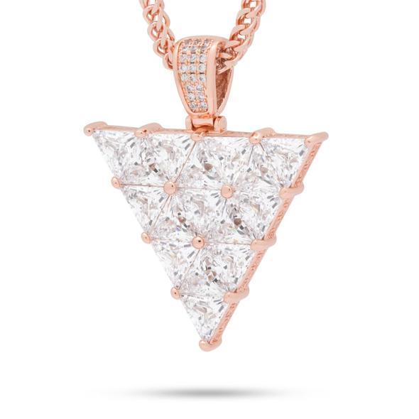 A symbol of geometric perfection, the Trinus takes its inspiration from the All-Seeing Eye, the trinity of Christianity. Each Trinus piece handset VVS Diamond simulate stones and is paired with a 2.5mm, 26” Franco chain.