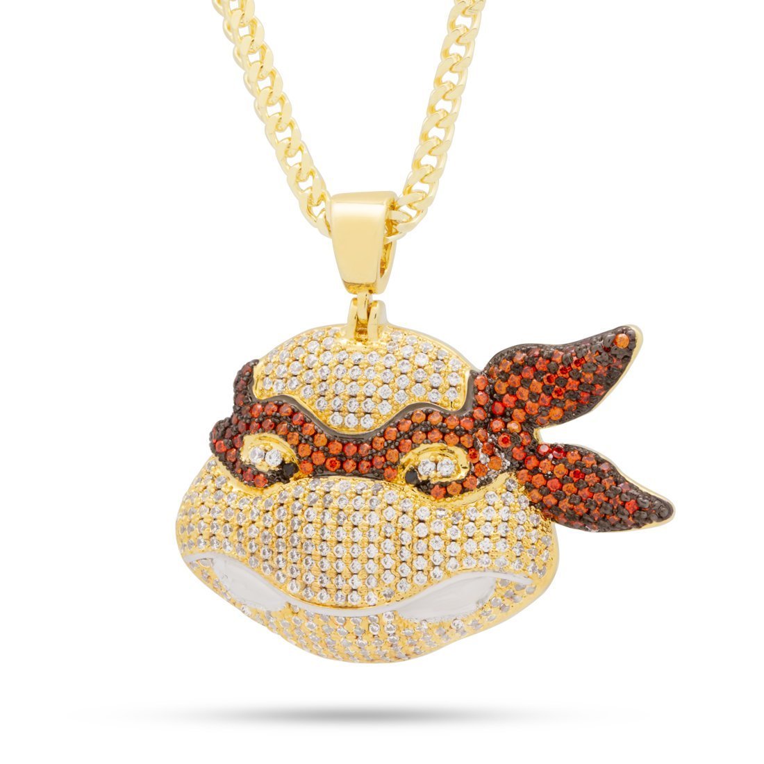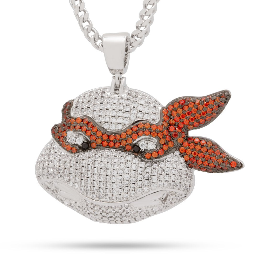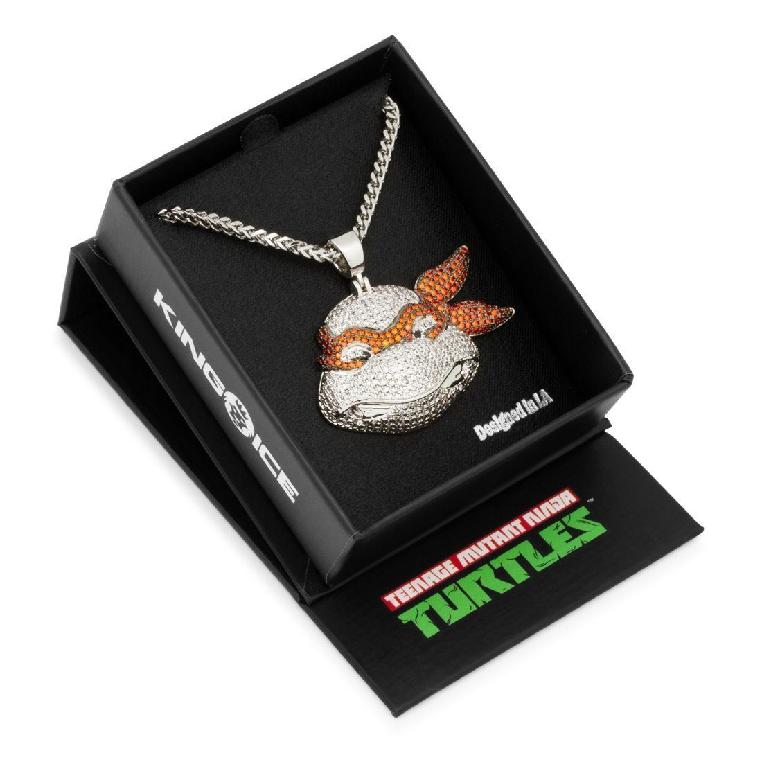 Among the four brothers, Michaelangelo is the young, goofy, jokester that loves to tease his brothers in addition to kicking some bad guy butts. Each Mikey piece is available in 14K Gold plating or white gold plating and includes lab diamonds to capture his signature orange color. Each official Teenage Mutant Ninja Turtle necklace includes a 2.5mm, 20" Stainless Steel Franco Chain.