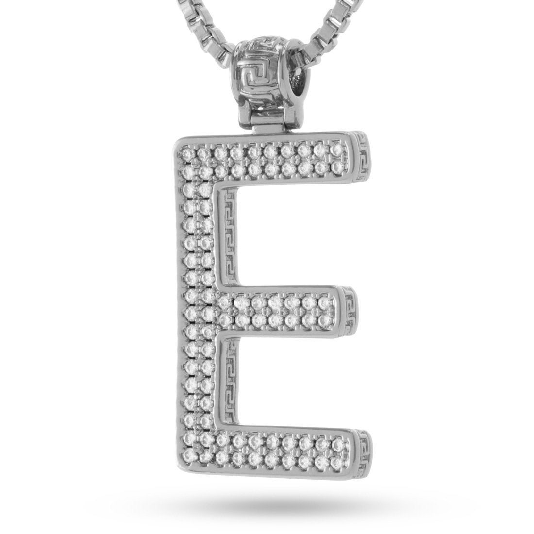 As with every initial pendant belonging to the ABC collection, the letter "E" uses White gold plating and clear CZ stones to provide the signature look to each item. Meanwhile, the 2mm, 26" box chain grants to perfect pairing for each item.
