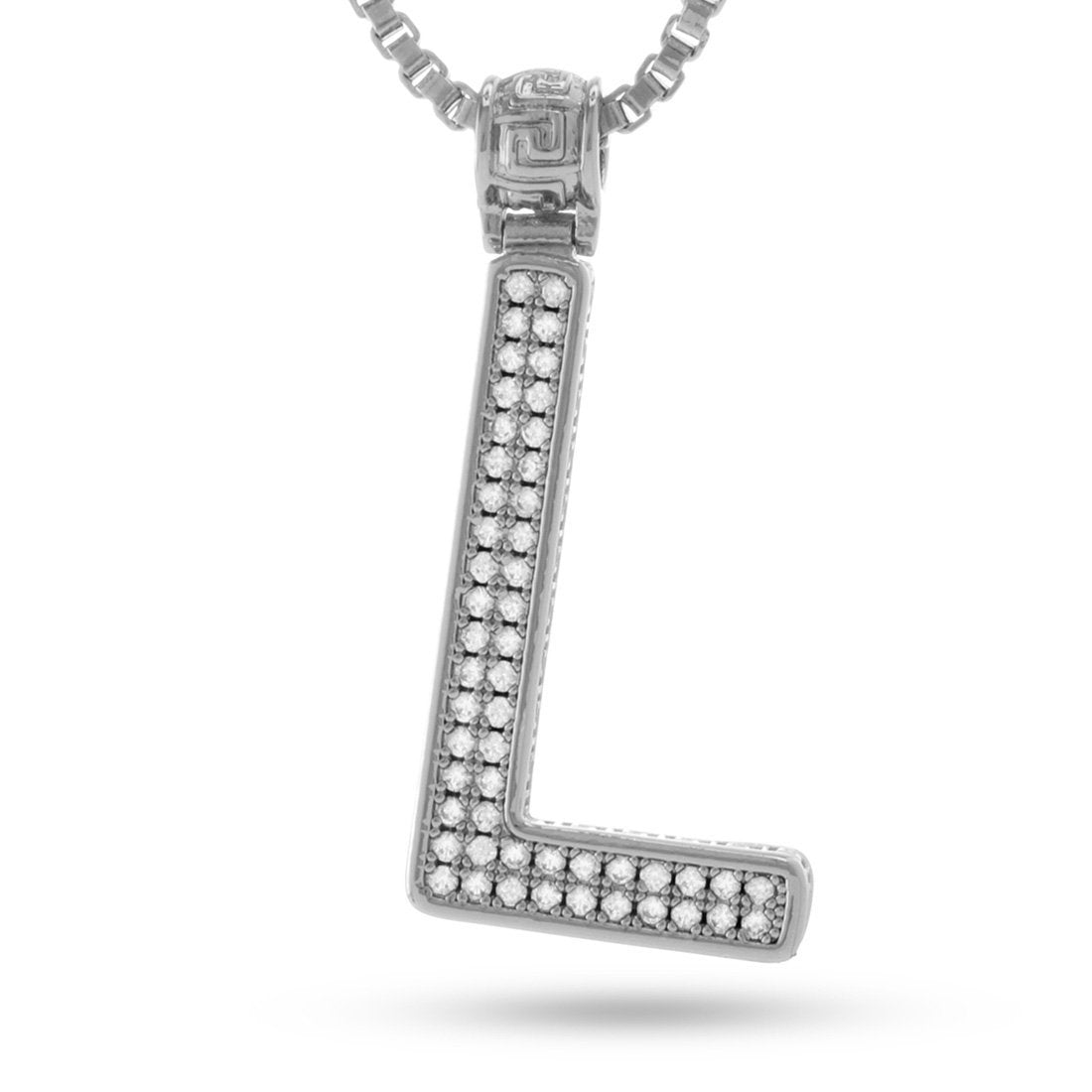 Plated to perfection, each letter "L" necklace provides the perfect look for whatever day. Using clear CZ stones, each handset along a micro pace setting, to provide a timeless streetwear look, finished with a 2mm, 26" box chain.